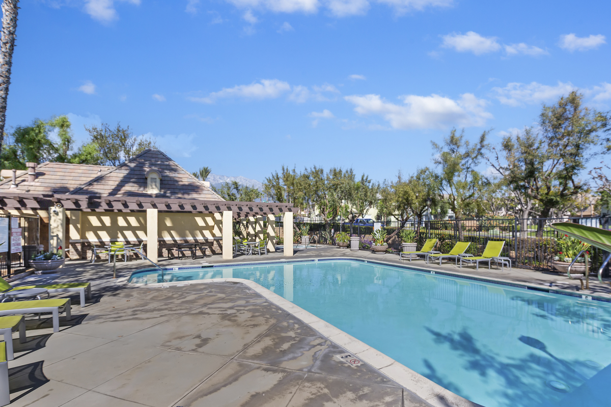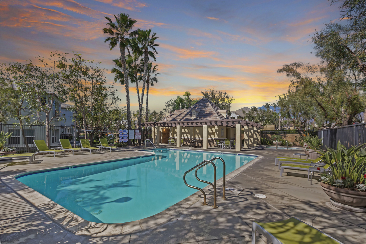 Residents enjoy resort-style community amenities including a pool, spa, and playground within a secure gated environment. Ideally located just steps from Victoria Gardens, offering premier shopping, dining, entertainment, and convenient freeway access.