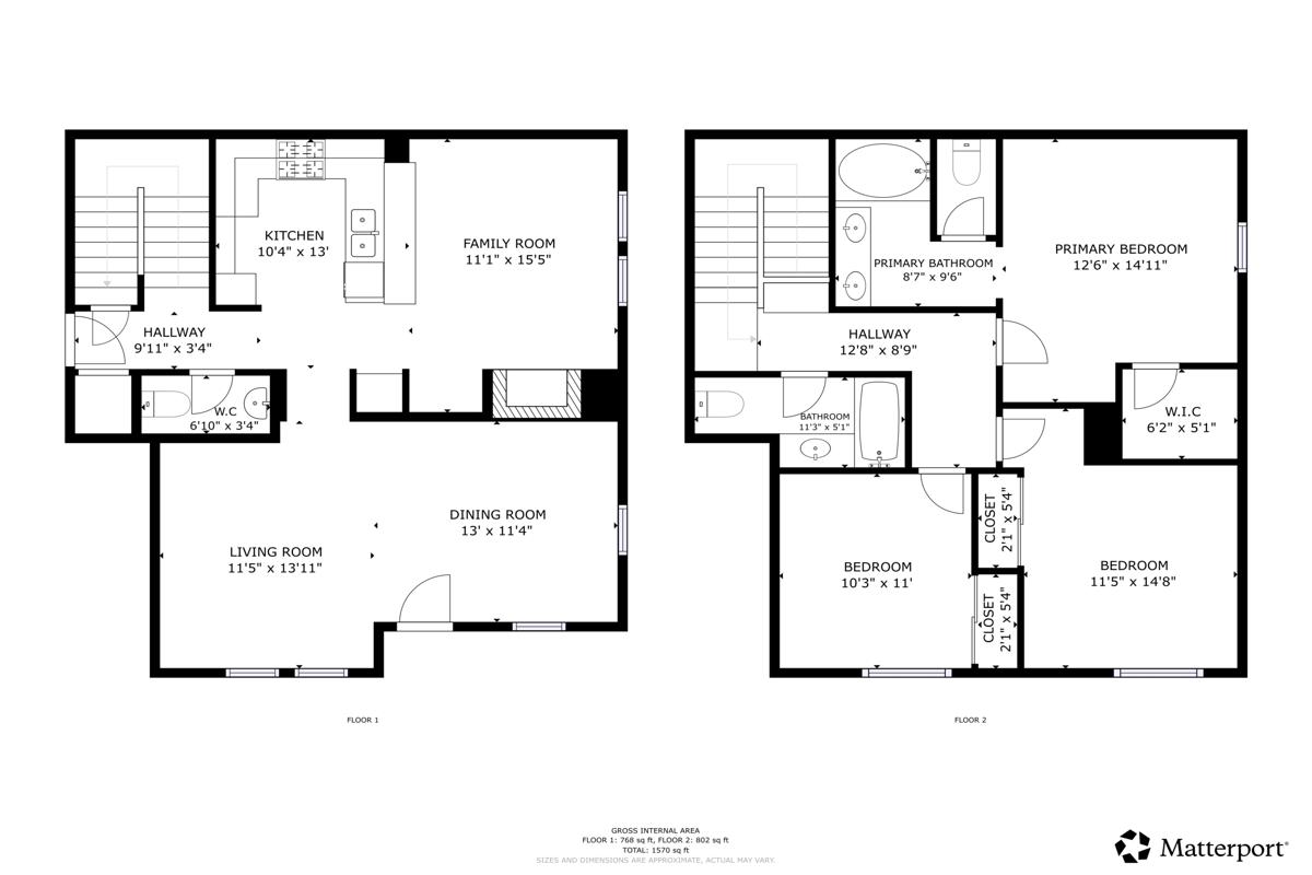 Upstairs, the generously sized primary suite features a walk-in closet and an en-suite bathroom with dual sink vanity and a large tub and shower combination. Two additional bedrooms offer comfortable space for family, guests, or office use. Additional highlights include indoor laundry, private patio area, and direct access to a two-car attached garage.